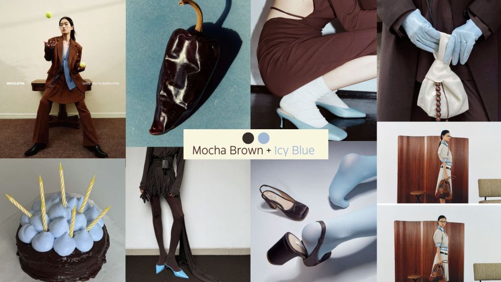 Mocha brown and icy cornflower blue create a striking yet harmonious pairing that masterfully plays on the principles of color theory. The warmth and depth of mocha brown provide a grounding foundation, while the cool, crisp vibrancy of cornflower blue introduces a refreshing contrast that feels modern and unexpected. This interplay of warmth and coolness evokes a sense of balance, making the combination visually compelling and versatile. Fashion-forward brands like Sandy Liang and Miu Miu have already embraced this juxtaposition, infusing their collections with a sense of playful sophistication. By pairing these hues, they tap into a duality of coziness and chicness, showcasing how earthy, nostalgic tones can be elevated by the clarity of icy pastels. This dynamic contrast also captures the zeitgeist of contemporary fashion—melding comfort with an edge, softness with precision.