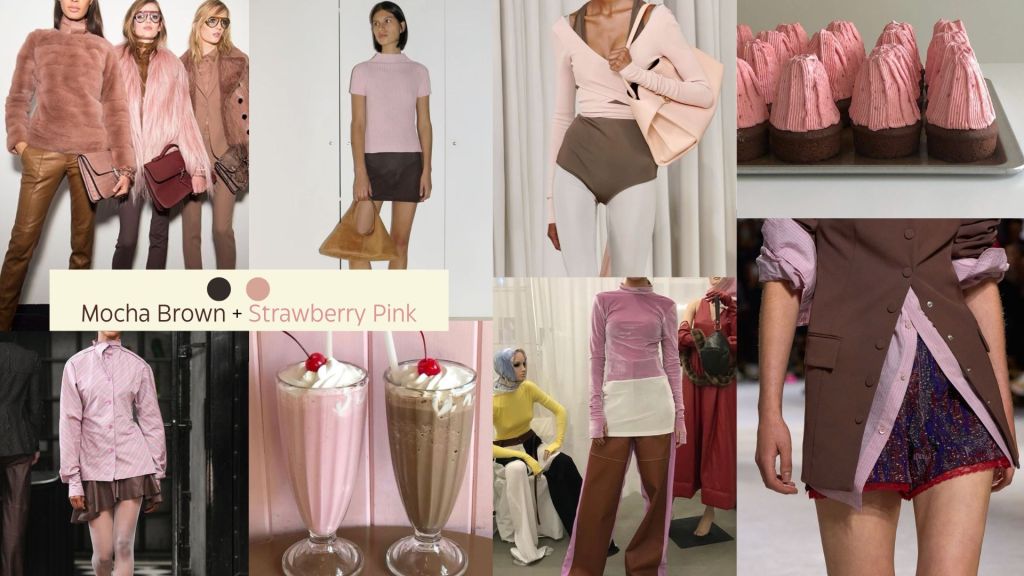 Mocha brown and strawberry pink form a delectable pairing that speaks to the heart of color theory—an analogous combination that exudes warmth and harmony. The rich, earthy tones of mocha brown provide a grounding effect, while strawberry pink adds a sweet, playful vibrancy that feels both nostalgic and modern. This combination draws inspiration from universally beloved treats like chocolate-covered strawberries, evoking a sense of indulgence and romance. Brands like Paloma Wool have embraced this duo, crafting collections that merge the soft blush of strawberry pink with the richness of mocha brown, creating looks that feel effortless yet deeply intentional. By juxtaposing these hues, designers achieve a balance that is both cozy and fresh, making this pairing a favorite for those who seek timeless elegance with a whimsical twist. This pairing not only reflects the warmth of familiar comforts but also taps into a broader trend of celebrating natural, food-inspired tones in fashion. Brands like Paloma Wool have mastered this pairing, blending soft pink tones with earthy browns to evoke both nostalgia and modern charm.