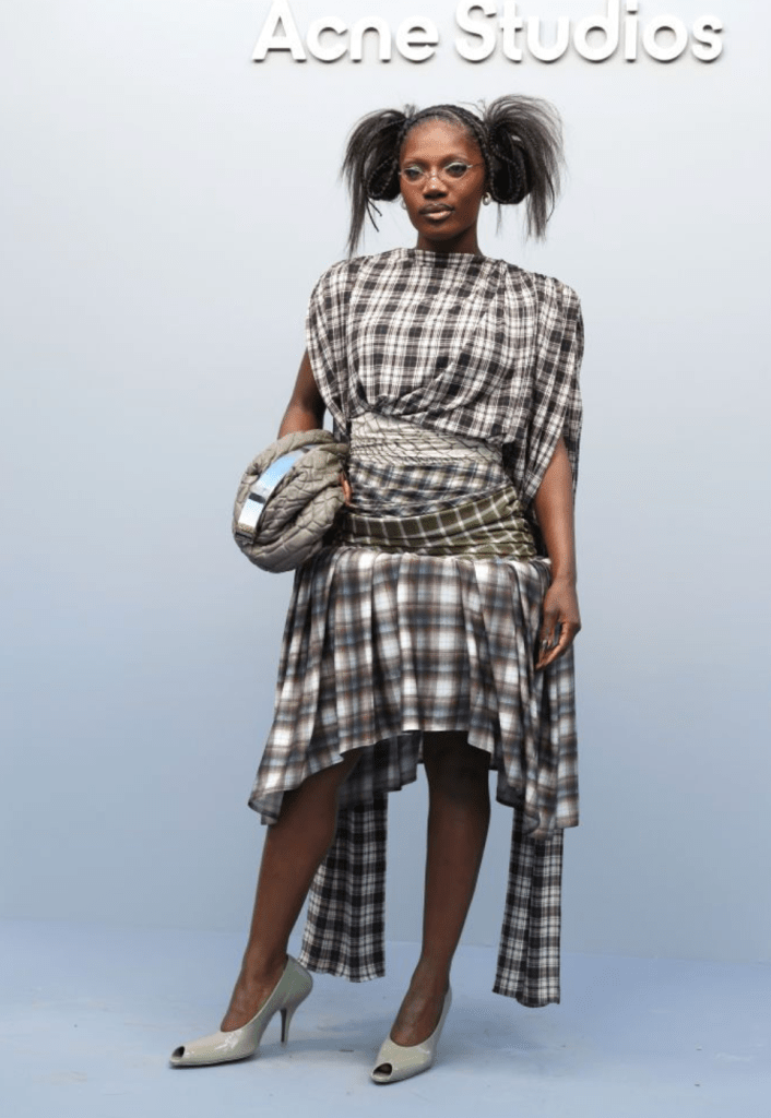 For Acne Studios, Doechii turned heads in a sheer, distressed maxi dress with deconstructed, asymmetrical detailing, perfectly embodying the brand’s signature avant-garde aesthetic. The ethereal yet grunge-inspired fabric created a fluid, sculptural effect, paired with structured outerwear and bold accessories, balancing softness with raw, undone textures.